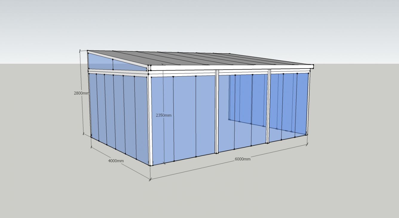 seitlich jeweils 6 Glasflügel ca. 65x210cm Rollwagen oben